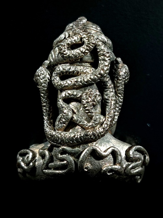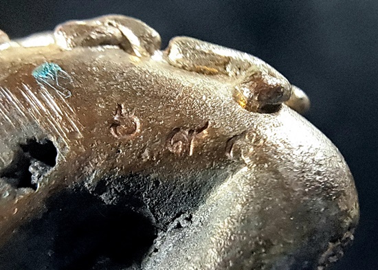 พระมงคลจักรวาฬพุทธาคมเขาอ้อ ปี 2545 เนื้อนวะแก่ทอง ก้นเงิน หมายเลขต้นๆ 103