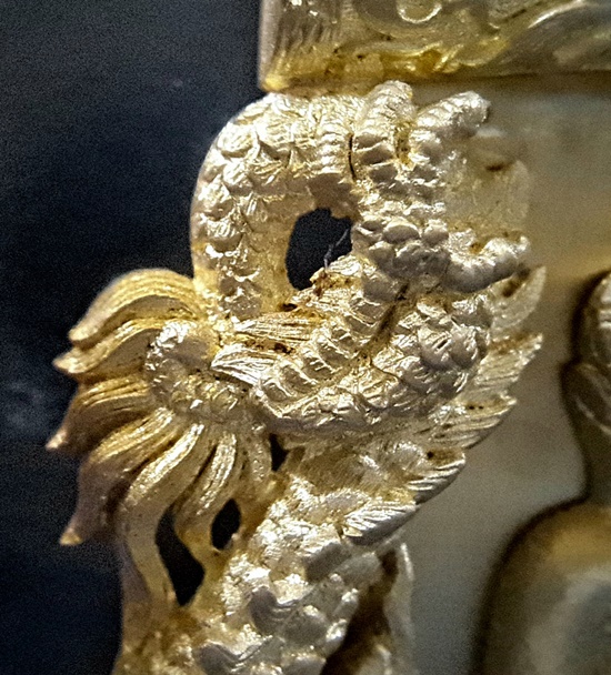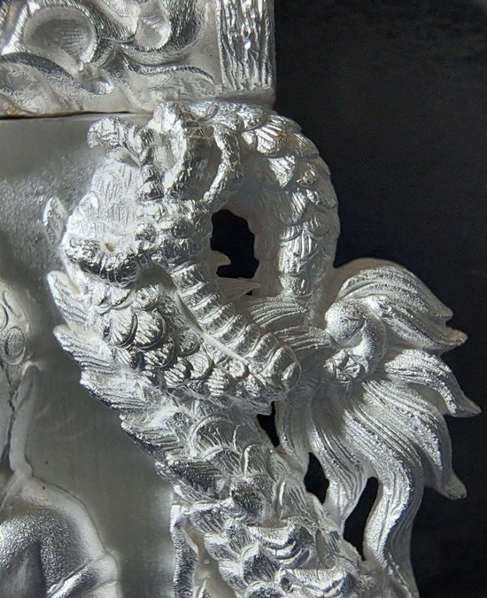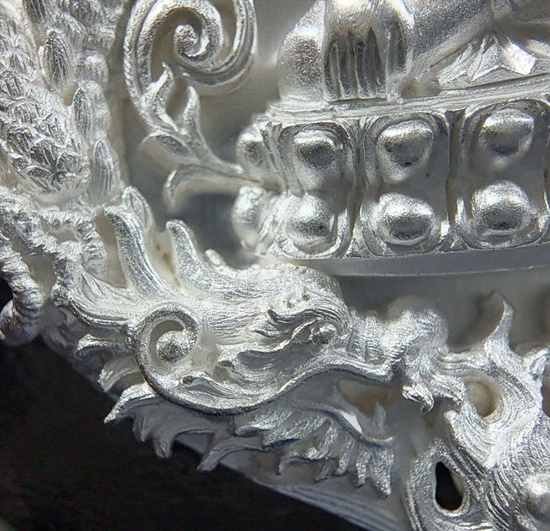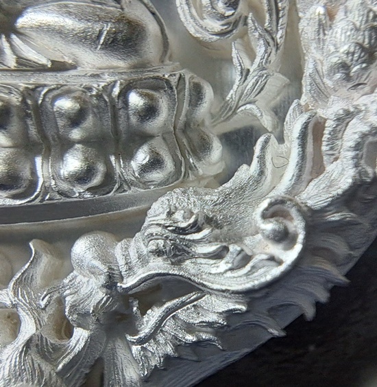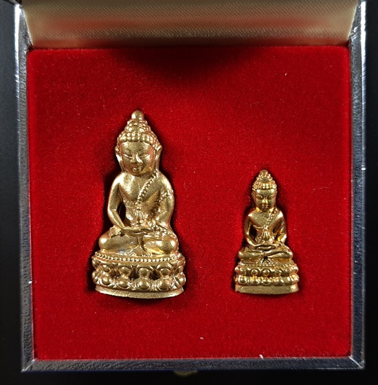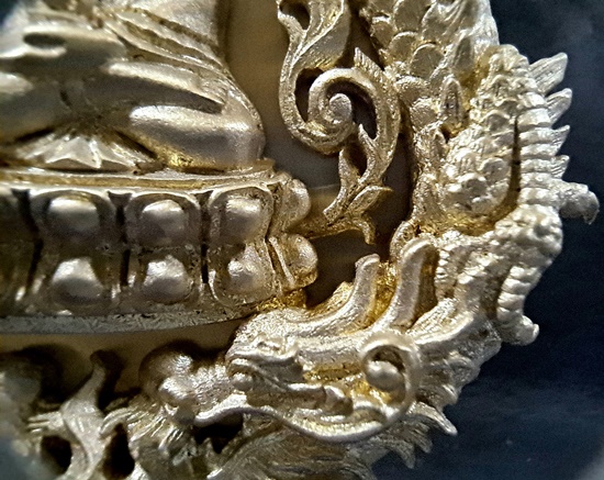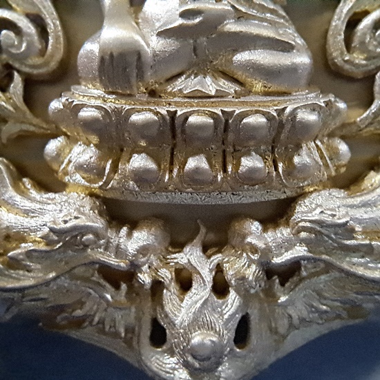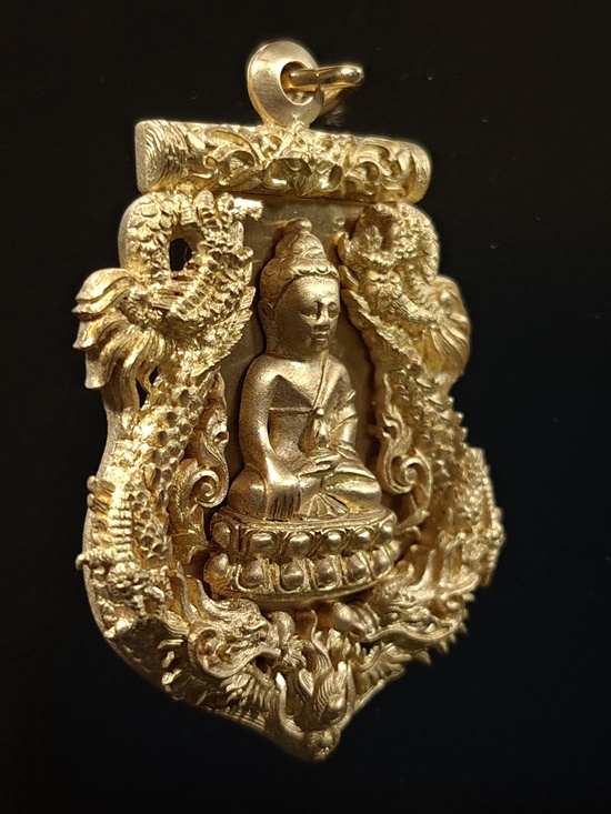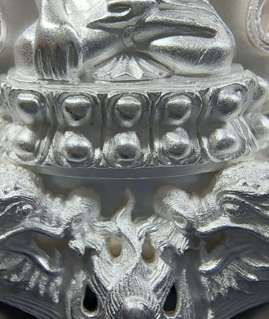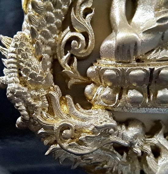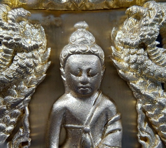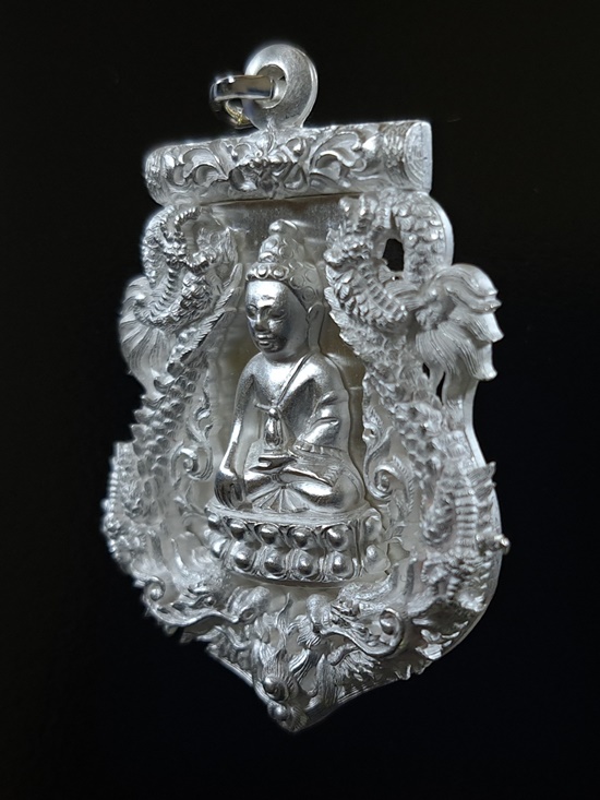 ทป.005 รายละเอียดความพิเศษ พระปิดตาพังพระกาฬ มงคลจักรวาล พุทธาคมเขาอ้อ เนื้อนวะโลหะพิเศษแก่เงิน ปี 2545 ถือเป็นรุ่นที่มีพิธีกรรมต่างๆเข้มขลังถึง 3 วาระ เช่นเดียวกับวัตถุมงคลปี 2544 ในรุ่นนี้ ท่านพระครูอดุลย์ธรรรมกิตติ์ (พ่อท่านกลั่น) เป็นประธานฝ่ายสงฆ์ โดยมี พล.ต.ต.ขุนพันธรักษ์ราชเดช เป็นประธานฝ่ายจัดสร้างวัตถุมงคลทั้งหมด ลูกศิษย์และผู้ที่เคารพนับถือพ่อท่านกลั่น และท่านขุนพันธ์ ต่างเก็บไว้ติดตัว ไม่ค่อยมีหมุนเวียน เนื่องจากพุทธคุณด้านคงกระพัน แคล้วคลาด สายเหนียว หรือเจ้าหน้าที่ผู้ปฏิบัติงานเสี่ยงทุกรูปแบบ ไม่ควรพลาด![]() วัตถุประสงค์การสร้าง 1. เพื่อเป็นการเผยแพร่ชื่อเสียง เกียรติคุณของสำนักเขาอ้อ 2. เพื่อหาทุนมาบูรณะปฏิสังขรณ์เสนาสนะต่างๆ ภายในวัดเขาอ้อในปัจจุบันและอนาคต 3. เพื่อเป็นการเฉลิมฉลองในวาระที่พ่อท่านกลั่นสิริอายุครบ 88 ปี ![]() ชนวนและมวลสาร ใช้ชนวนหลักจากพระหลวงพ่อทวด 100 ปี ท่านขุนพันธรักษ์ราชเดช และชนวนมวลสารอื่น จากพระเกจิอาจารย์ทั่วสารทิศ รวมทั้งแผ่นยันต์ 108 นะ 14 นะ ตามตำรับวิชาเล่นแร่แปรธาตุของสำนักเขาอ้อ ![]() ด้านพิธีกรรม มีอยู่ 3 วาระ 1. ครั้งที่ 1 วันอาทิตย์ที่ 23 ธันวาคม 2544 ณ สำนักเขาอ้อ ประกอบพิธีเททองแบบโบราณ ตามตำรับสำนักเขาอ้อ โดยมีพ่อท่านกลั่น ,ท่านขุนพันธรักษ์ราชเดช ,อ.ฉันท์ทิพย์ พันธรักษ์ราชเดช, อ.ประจวบ คงเหลือ และพระเถราจารย์สายเขาอ้ออีก 8 รูป ร่วมประกอบพิธี ซึ่งเกิดเหตุมหัศจรรย์ในวันนี้ต่อหน้าทุกคน ก่อนพิธีเททอง ฝนได้เทลงมาอย่างหนักตั้งแต่ช่วงเช้า แต่พอถึงฤกษ์พิธีเททอง ฝนก็หยุดตกอย่างฉับพลัน ![]() ครั้งที่ 2 วันพฤหัสบดีที่ 9 พฤษภาคม 2545 เวลา 9.19 น. ประกอบพิธีพุทธาภิเษก ณ วิหารหลวงวัดพระธาตุวรวิหาร จ.นครศรีธรรมราช โดยมีพระเถราจารย์ที่มีชื่อเสียงทั่วภาคใต้นั่งปรกบริกรรมภาวนา โดยมีท่านขุนพันธรักษ์ราชเดช เป็นเจ้าพิธี ร่วมกับ อ.ฉันท์ทิพย์ พันธรักษ์ราชเดช, อ.ประจวบ คงเหลือ ![]() ครั้งที่ 3 วันที่ 11 พฤษภาคม 2545 เวลา 9.19 น. ประกอบพิธีเบิกถ้ำปลุกเสก ภายในถ้ำฉัตรทัณฑ์ สำนักเขาอ้อ มีพระเถราจารย์สายเขาอ้อนั่งปลุกเสก ท่านขุนพันธรักษ์ราชเดช เป็นเจ้าพิธี ร่วมกับ อ.ฉันท์ทิพย์ พันธรักษ์ราชเดช, อ.ประจวบ คงเหลือ ![]() พระโพธิสัตว์พังพระกาฬ หรือพระปิดตาพังพระกาฬ เป็นปริศนาเชิงปรัชญา หมายถึงผู้อยู่เหนือกาลเวลา หรืออยู่เหนือความมืดมิด (พระกาฬ) มีสมญานามว่า พญาพังพระกาฬ เป็นผู้มีฤทธิ์อำนาจ สามารถแก้ไขภัย อาเภท หรือโทษร้ายจากดวงดาวที่ให้โทษต่อดวงชะตาได้ ![]() พระปิดตาพังพระกาฬ สร้างขึ้นในรูปศิลปกรรมที่มีเอกลักษณ์และคว