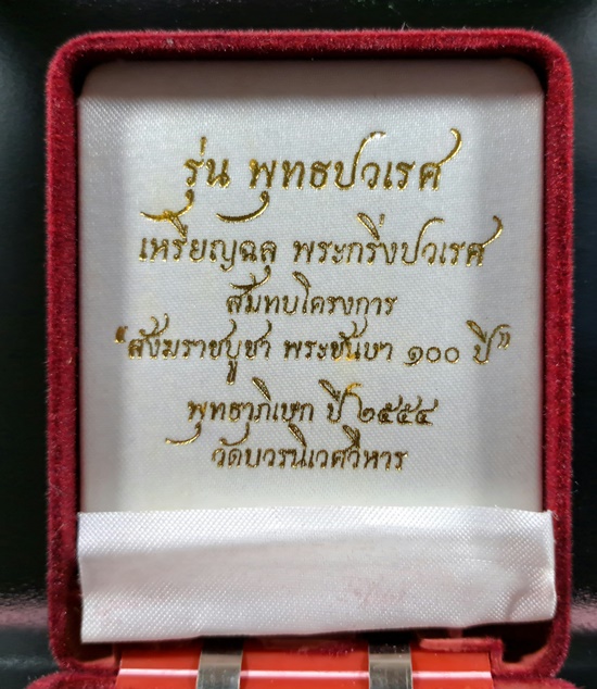 ทป.001 รายละเอียดความพิเศษ: เหรียญเสมาฉลุ ปวเรศ โครงการสังฆบูชาพระชันษา 100 ปี เป็นสุดยอดของเหรียญหนึ่งที่มีการสร้าง ด้วยเหตุผลดังนี้1.สุดยอดมวลสารสำคัญในการสร้าง ที่แบ่งออกเป็น 3 ส่วน ได้แก่ 1.1 ผงพุทธคุณ จะนำไปฝังตะกรุดทองคำแท้ และนำไปใส่ไว้ในช่องด้านหลังเหรียญปวเรศทุกองค์ 1.2 มวลสารโลหะ ครอบจักรวาล ทั้งด้านเลื่อนยศ เลื่อนตำแหน่ง แคล้วคลาด เมตตามหานิยม 1.3 ใช้วัตถุมงคลที่เป็นพระทองคำเป็นมวลสาร กรณีสร้างเป็นเนื้อทองคำ (รายละเอียดมวลสารด้านล่าง) 2.สุดยอดพระเถาราจารย์ที่มีชื่อเสียง 118 รูป ทั่วประเทศ ร่วมพิธี 3.ออกแบบและผลิตโดยแพรนด้า จิวเวลรี โรงงานผลิตจิวเวลรีระดับโลก ทำให้รูปแบบที่เหรียญที่ผลิตออกมา มีความเข้มขลัง วิจิตรงดงามเป็นที่สุด ![]() วัตถุประสงค์การสร้าง 1.สมทบโครงการ "สังฆราชบูชา พระชันษา 100 ปี" เพื่อซื้อเครื่องมือแพทย์ 2.สมทบสร้างอาคารกุฏิสงฆ์ วัดอาวุธวิกสิตาราม ![]() จำนวนการสร้าง เนื้อทองระฆัง 1,999 องค์ ขนาดองค์พระ ปีที่สร้าง 2554 ![]() ชนวนและมวลสาร ส่วนที่ 1 ผงพุทธคุณที่นำไปใส่ไว้ในตะกรุดทองคำแท้ และนำไปใส้ด้านหลังเหรียญทุกเหรียญ ได้แก่ 1.1 สมเด็จวัดระฆัง 1.2 สมเด็จบางขุนพรหม ปี 2509 1.3 หลวงปู่ทวดเนื้อว่าน ปี 2497 1.4 ลูกอมอาจารย์ทิม วัดชางให้ ซึ่งหายากมาก 1.5 จีวรอาจารย์ทิม วัดช้างให้ 1.6 เกศาหลวงพ่อคูณ วัดบ้านไร่ 1.7 ผงยาจินดามณี หลวงปู่บุญอยู่ ท่านมีศักดิ์เป็นหลานแท้ๆหลวงปู่บุญ วัดกลางบางแก้ว ![]() ส่วนที่ 2 มวลสารที่เป็นโลหะ ที่พุทธคุณครอบจักรวาล ทั้งด้านเลื่อนยศ เลื่อนตำแหน่ง แคล้วคลาด เมตตามหานิยม ได้แก่ 2.1 เหรียญเลื่อนสมณศักดิ์ หลวงปู่ทวด ปี 2508 2.2 เหรียญพุฒซ้อน หลวงปู่ทวด ปี 2509,2511 2.3 เหรียญเจริญพร หลวงปู่ทิม วัดระหารไร่ 2.4 เหรียญหลวงพ่อคูณ ปี 2517 2.5 เหรียญเสมาฉลุลอยองค์ เลื่อนสมณศักดิ์ หลวงพ่อคูณ ![]() ส่วนที่ 3 เนื้อโลหะที่ต้องใช้ทองคำเป็นมวลสาร จะใช้วัตถุมงคลที่เป็นเนื้อทองคำ ได้แก่ 3.1 รูปหล่อสมเด็จพระพุฒาจารย์โต เนื้อทองคำ 3.2 รูปหล่อหลวงปู่ทวด เนื้อทองคำ 3.3 รูปหล่อหลวงพ่อเงิน วัดบางคลาน เนื้อทองคำ ![]() พิธีพุทธาภิเษก ณ พระอุโบสถ วัดบวรนิเวศวิหาร วันที่ 13 ธันวาคม 2554 ![]() พระเถราจารย์ในพิธีที่มีชื่อเสียง จำนวน 118 รูป และพระสงฆ์ 199 รูป อาทิ -หลวงปู่คำบุ วัดกุดชมภู, หลวงปู่บุญหนา วัดป่าโสตถิผล, หลวงพ่อบุญอุ้ม วัดป่าโนนแพง, หลวงปู่แขก วัดสุนทรประดิษฐ์ , หลวงพ่อพูน วัดบ้านแพน ,หลวงปู่เกลี้ยง วัดเนินสุทธาวาส, หลวงพ่อผอง วัดพรหมยาน, พระมหาสุรศักดิ์ วัดประดู่, หลวงพ่อคง วัดเขากลิ้ง, ครูบากฤษณะ สำนักสงฆ์เวฬุวัน, หลวงพ่ออุดม วัดพิชัยสงคราม, หลวงพ่อฟู วัดบางสมั